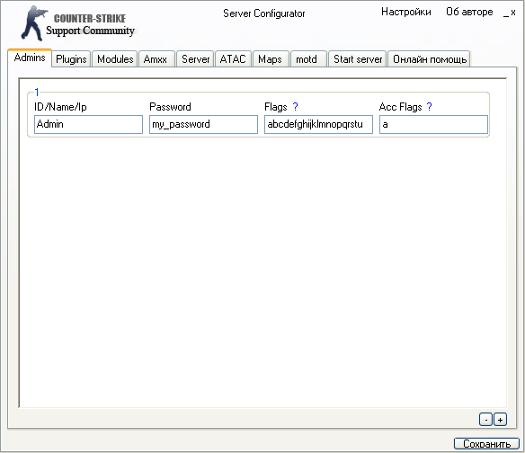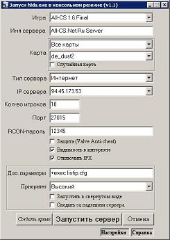 Server Configurator (Настройка сервера) - Программы для cs 1.6